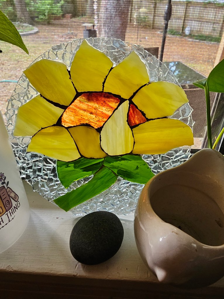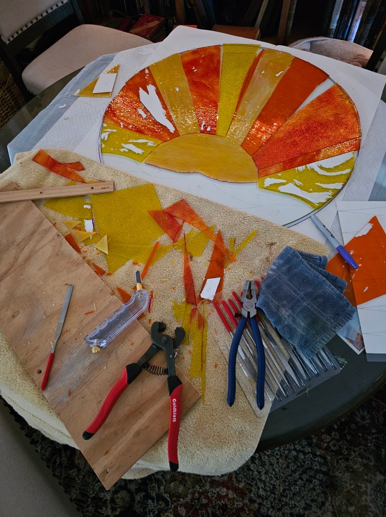 Now I am learning to work with glass, which is a challenge I am enjoying. I am learning to cut glass, grind glass, and consider how the pieces work together.