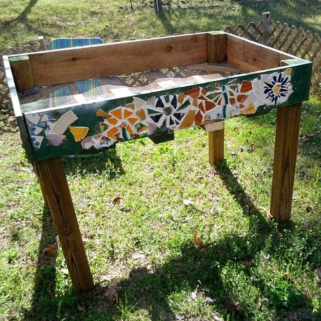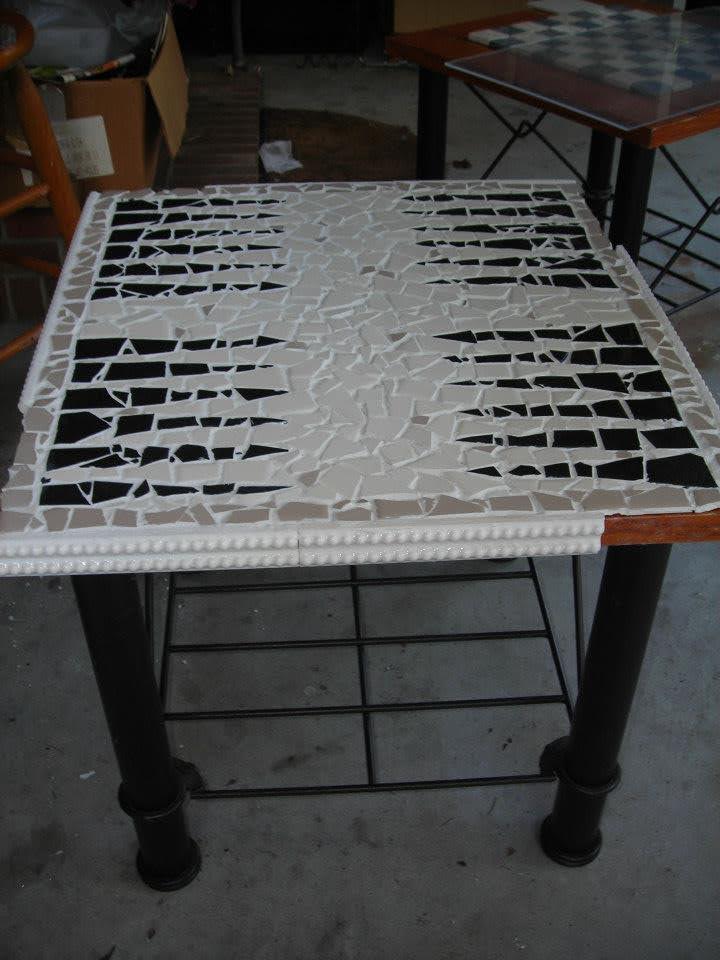 My favorite thing to do is to take broken pieces and repurpose them. My early pieces had their problems. Again, learning. My garden table was interrupted because we moved and it got left behind. My 2nd backgammon table, I forgot to alternate the colors of the points.