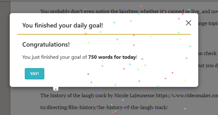 Okay, that’s enough digressions for today. I am really just trying to hit my 750 words a day quota so my computer will do the confetti thing it does.